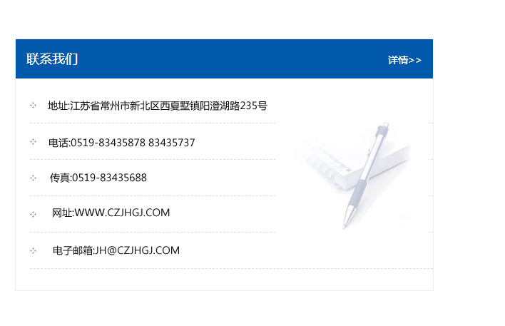 傳真:0519-83435688    郵編:213135    網址:WWW.czjhgj_com.keduwu.com    電子郵箱:JH@czjhgj_com.keduwu.com